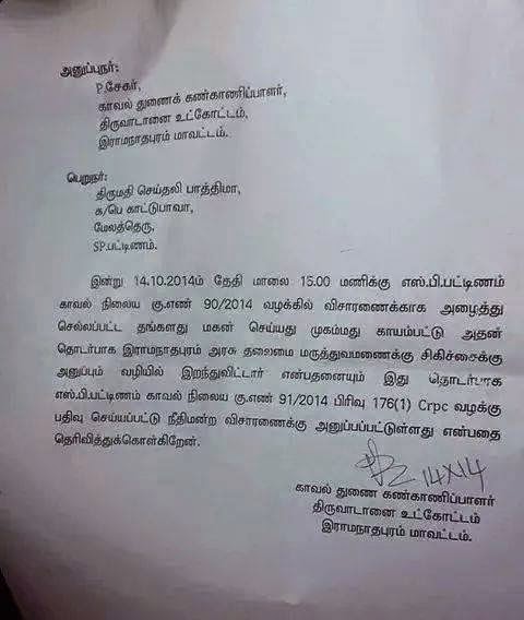 ராமநாதபுரம் எஸ்.பட்டிணம் காவல் நிலையத்தில்